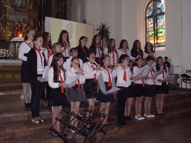 A főesperes köszöntőjében kitartást és bizalmat kívánt a gyerekeknek önmaguk és társaik iránt. Majd a gyergyószéki települések tanintézményeinek kórusai, hangszeres csoportjai mutatkoztak be egyházi és világi műveket adtak elő a zene ünnepén. A szombati eseményen hét gyermekkórus vett részt: a borszéki Zimmenthausen Iskolaközpont, a gyergyócsomafalvi Köllő Miklós Általános Iskola, a gyergyóditrói Siklódi Lőrinc Általános Iskola, a gyergyóremetei Fráter György Általános Iskola, a gyergyószárhegyi Bethlen Gábor Általános Iskola, a gyergyószentmiklósi Vaskertes Általános Iskola és a házigazda Fogarasy Mihály Általános Iskola kórusai.”
