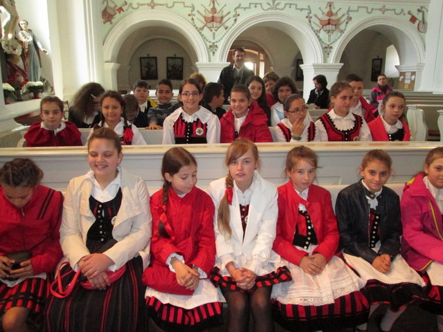 A Domokos Pál Péter Vándor Gyermekkórus Találkozó idei házigazdája a gyergyószentmiklósi Fogarasy Mihály iskola volt. Szombaton délelőtt a tanintézményből vonultak fel a kórusok a Szent Miklós templomba, ahol elsőként felcsendült az: Eljöttünk mind, zengjen az ének.
