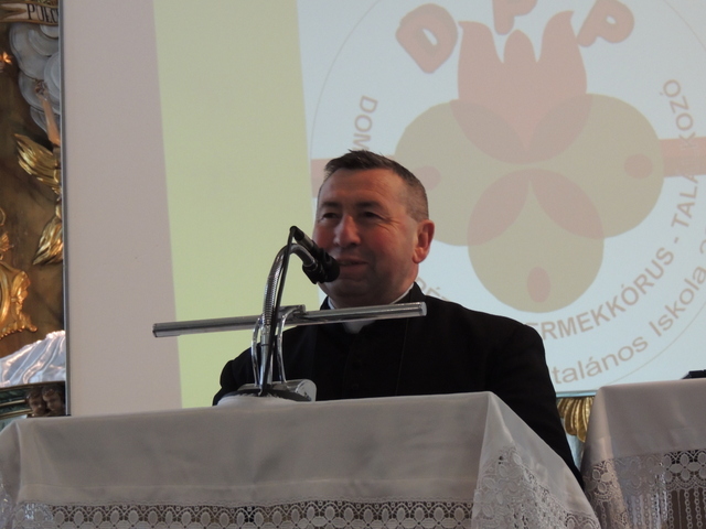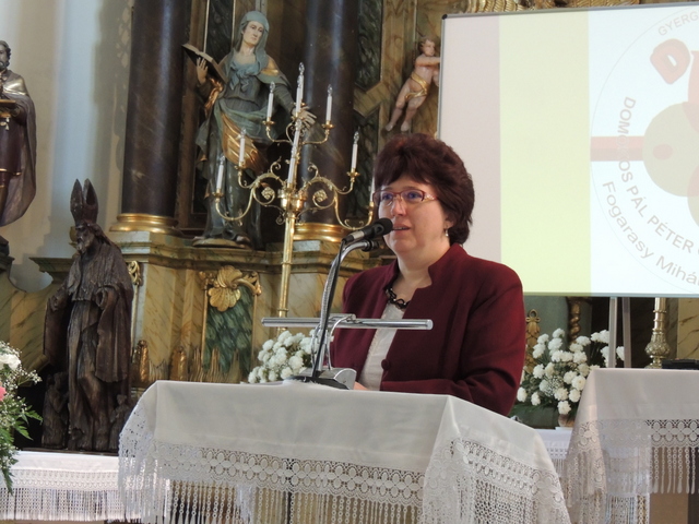 Kiemelte a találkozások fontosságát is, ahol énekelni szerető gyerekek, pedagógusok megtalálják lelkik boldogságukat a közös éneklésben. A rendezvényen megemlékeztek a névadóról is. Domokos Pál Péter munkásságának az egyik és talán legfontosabb eredménye, hogy Gyergyóban ma is magyarul énekelünk. Ezzel a céllal indíthatta útjára 1935-ben Petres Ignác és Mihály István kántortanítókkal együtt a Gyergyó-medencei gyerekkórus-találkozót – hangzott el. A több éves kihagyás után 1992-ben Pál Ibolya gyergyószentmiklósi zenetanárnő indította újra útjára a találkozót. György István, Gyergyószentmiklós alpolgármestere és Portik-Hegyi Kelemen főesperes-plébános is szólt az ünneplőkhöz.