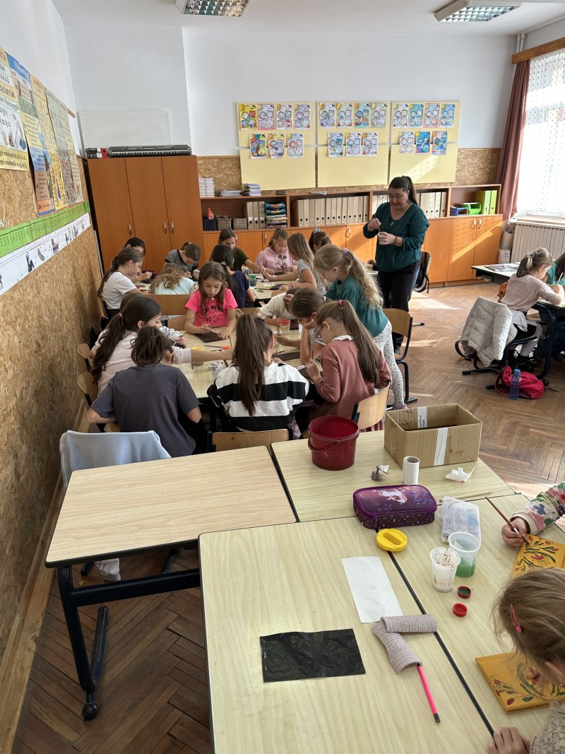 A népviselet jellemzőit is felfedezték kis bemutatáson keresztül a tanulók, majd saját készítésű babájukat öltöztették egyszerű népies viseletbe Biró Anna-Mária és Láng Kinga tanítónők vezetésével.