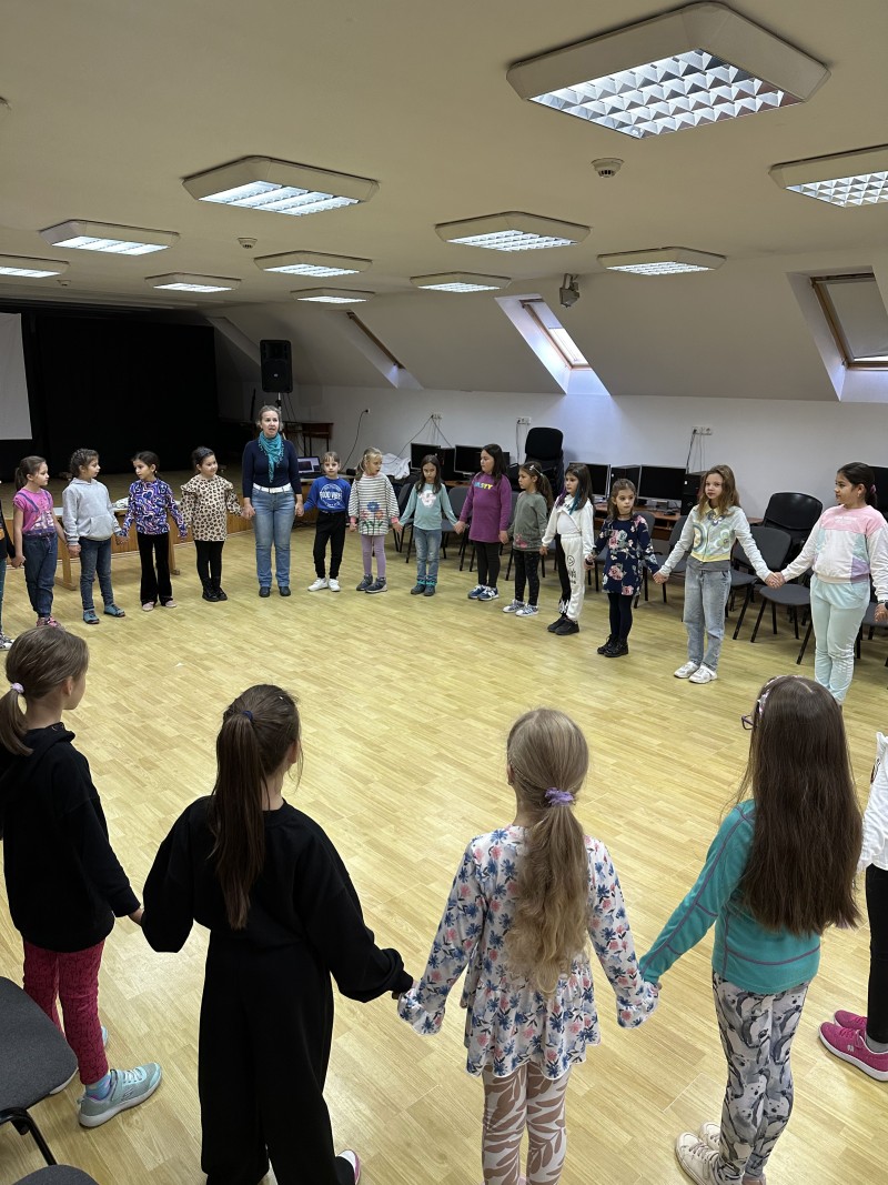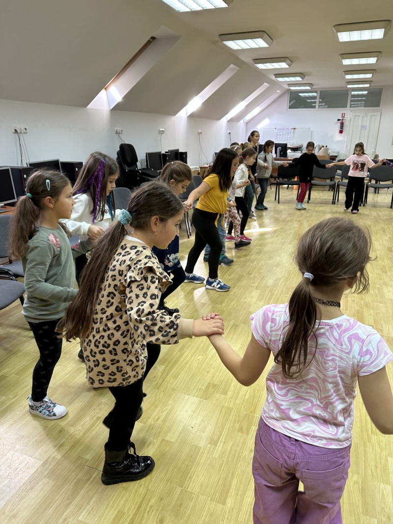 A napi rendszeres éneklést kiegészítette a csoportos játék, Barabás Zsófia és Benedek Ibolya tanítók irányításával.